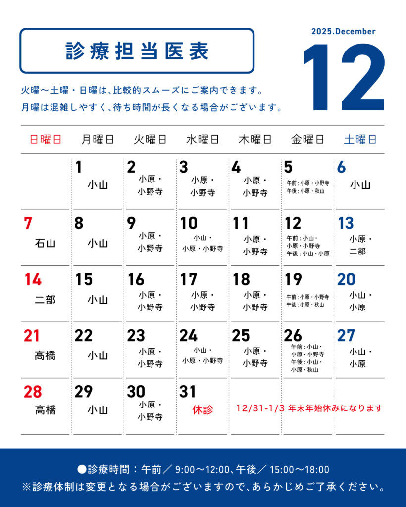 休診日:2025年12月31日(水)〜2026年1月3日まで