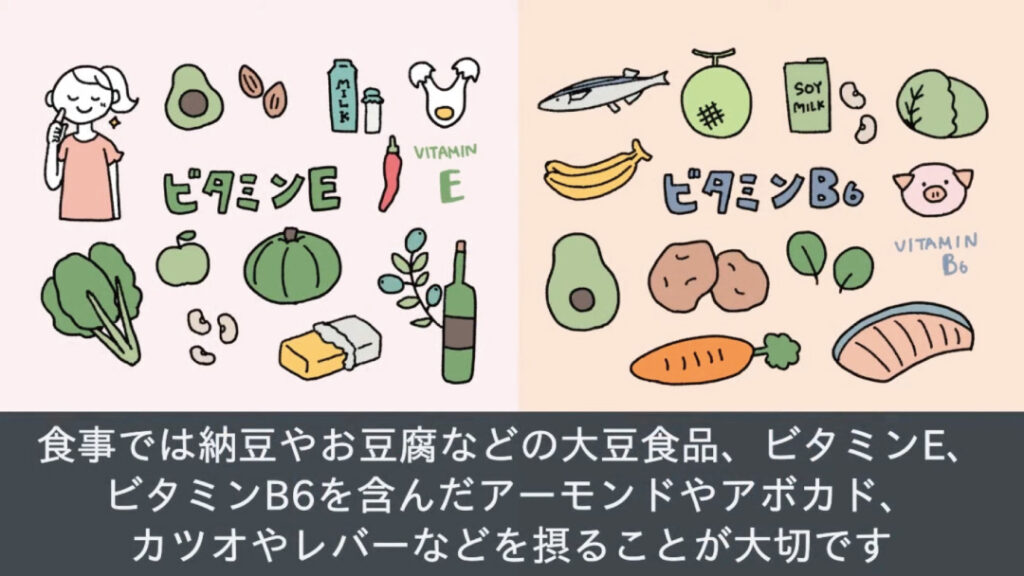 - 大豆製品やビタミンE・B6を含む食事を意識する