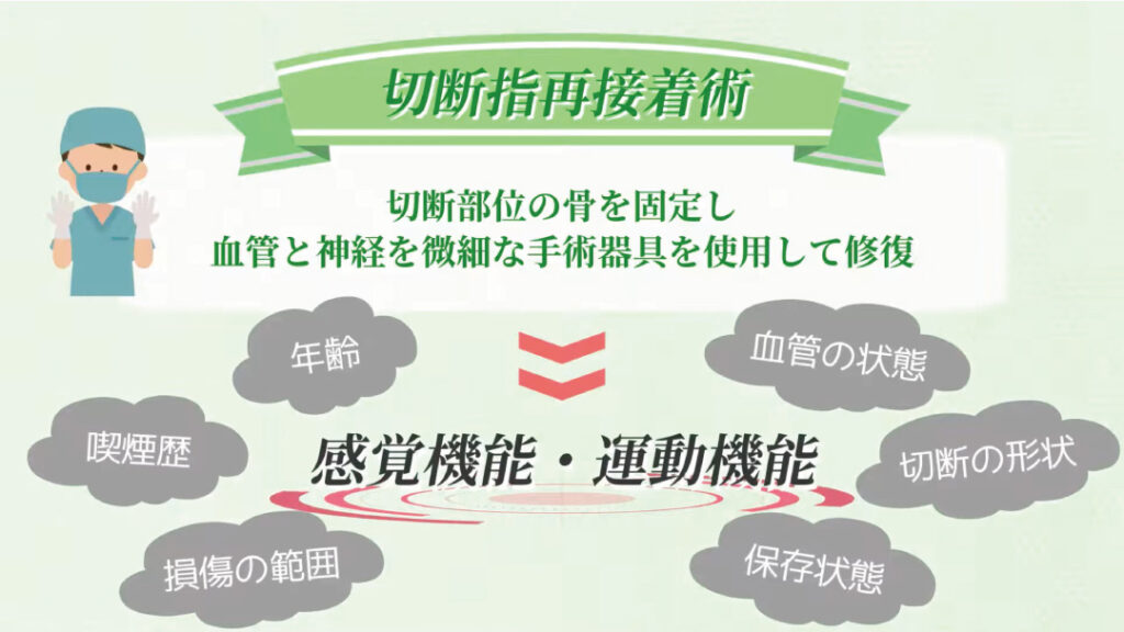 再接着が可能かどうかは、切れ方や保存状態、受傷からの時間などを総合的に判断して決まります。