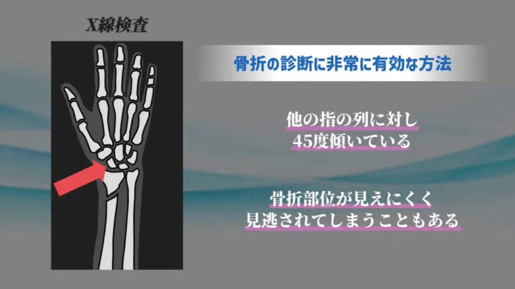 舟状骨は傾いた位置にあるため、通常の角度だけでは骨折が写らない場合があります。